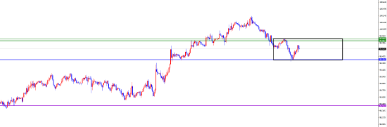 整体上价格测试到日线支撑99.40位置,所以关注99.40-99.85区间破位后再跟随